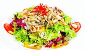 Cá hồi thường có lớp da dày và béo, bạn có thể tận dụng các loại da cá có độ dày như cá hồi, cá gộc, để làm thành món salad da cá vừa thơm ngon lại thanh mát.
