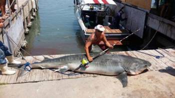 Một người đàn ông ở Texas, Mỹ, mới đây phát hiện và câu được một con cá nhám hổ, một loài cá có thể tấn công con người, nặng gần 400 kg.