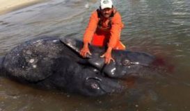 Một cặp cá voi xám dính liền hai đầu, hai đuôi kỳ dị vừa được phát hiện tại bán đảo Baja, California.