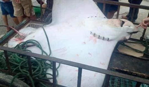 Ngư dân Phạm Văn Trọng (SN 1973, thôn Bãi Hương, xã Tân Hiệp, Hội An, Quảng Nam) bắt được con cá đuối nặng 80 kg trên vùng biển Cù Lao Chàm.