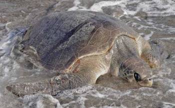 Ông Huỳnh Kim Phụng, thành viên nhóm tình nguyện bảo vệ rùa biển thôn Hải Giang, xã Nhơn Hải (TP Quy Nhơn, Bình Định) cho biết: Rạng sáng ngày 18/7, một con rùa biển dài khoảng 1,2m, rộng gần 1m đã bò lên bãi biển thôn Hải Giang cách Dinh Bà trên 300m đẻ khoảng 120 trứng.