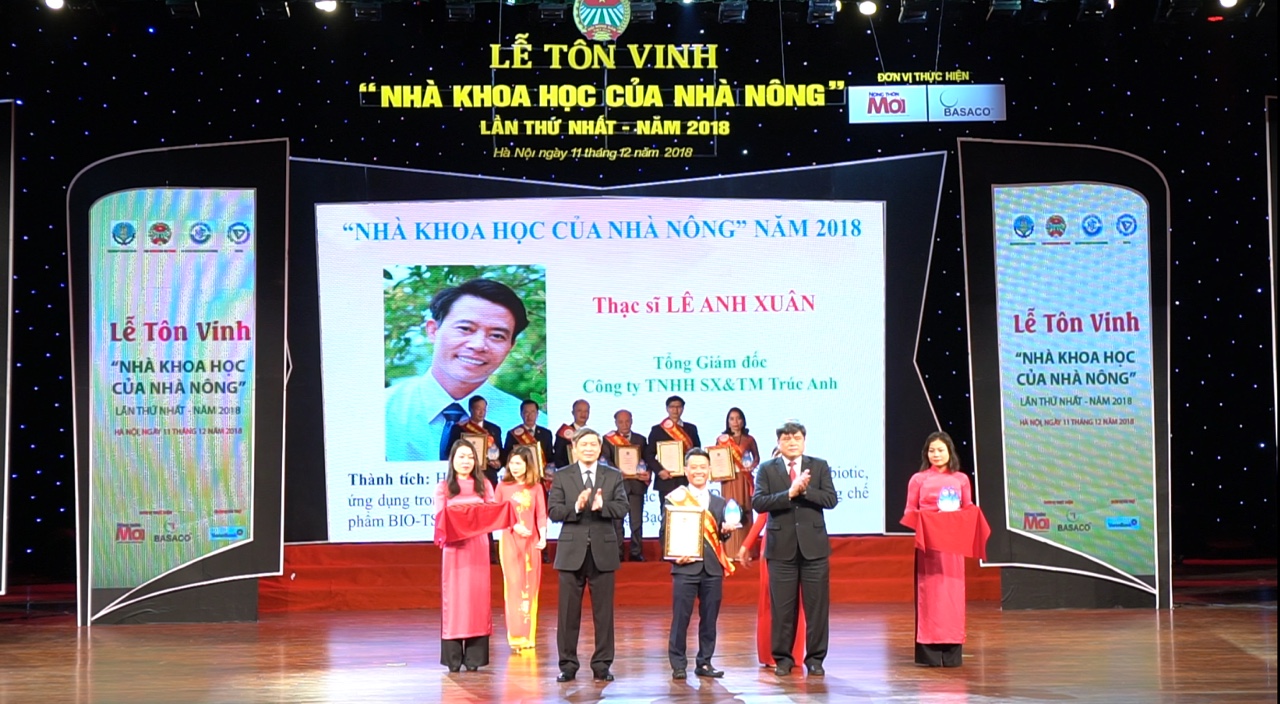Tối 11/12, tại Hà Nội, Trung ương Hội Nông dân Việt Nam phối hợp Bộ NN&PTNT, Bộ Khoa học và Công nghệ, Liên hiệp các Hội Khoa học Kỹ thuật Việt Nam tổ chức Lễ tôn vinh “Nhà khoa học của nhà nông” lần thứ nhất, năm 2018. Ông Lê Anh Xuân, Giám đốc Công ty TNHH SX-TM Trúc Anh vinh dự là một trong 53 nhà khoa học được vinh danh.
