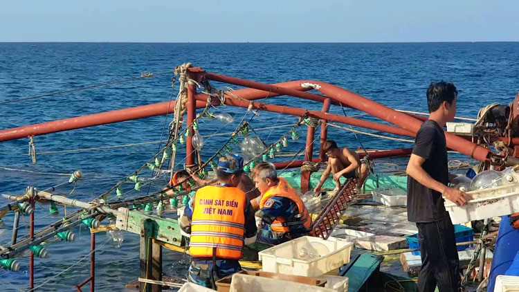 Khoảng 6 giờ 30 phút, chúng tôi tới hiện trường. Tôi cùng tổ công tác hạ xuồng, tiếp cận tàu bị nạn. Cảnh tượng trước mắt khiến tim tôi thắt lại. Chiếc tàu cá đã phá nước hoàn toàn, nghiêng hẳn trên bãi đá ngầm. Trên phần mạn tàu còn nổi, tám ngư dân ngồi co cụm, ánh mắt thất thần, gương mặt hốc hác, câm lặng như hóa đá. Một người đàn ông tóc hoa râm, giọng run run vì kiệt sức, nghẹn lời: