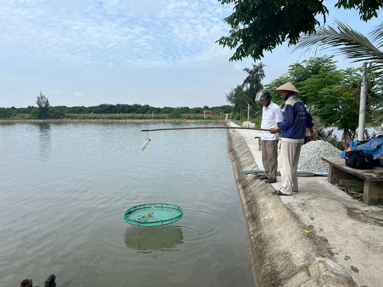 Những ngày này, ông Trương Quang Tùng (xã Hộ Độ, TP Hà Tĩnh) luôn túc trực chăm sóc tôm nuôi.