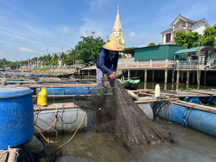 Còn gia đình bà Nguyễn Thị Hoài, hộ nuôi cá lồng ở thôn Sông Hải, xã Thạch Sơn, huyện Thạch Hà cho biết: Vào mùa này, thời tiết nắng nóng xen kẻ mưa dông, không khí oi bức làm cá nuôi trong lồng dễ bị stress và mắc bệnh do nhiễm khuẩn, nấm, ký sinh trùng. Vì vậy, ngoài theo dõi, kiểm tra sức khỏe của cá thì bà Hoài còn thường xuyên vệ sinh lồng nuôi, khi nắng nóng bà đã sử dụng lưới đen để che chắn phía trên mặt lồng, đồng thời tăng cường bổ sung vitamin, khoáng chất cho cá nuôi để tăng sức đề kháng.