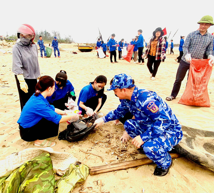 Điểm nhấn của chuỗi hoạt động là chương trình ra quân làm sạch môi trường biển gắn với tuyên truyền, phổ biến pháp luật và kỹ năng bảo đảm an toàn cho ngư dân, thanh thiếu niên trên địa bàn. Ngay sau lễ phát động, các lực lượng đã đồng loạt triển khai thu gom rác thải tại khu vực bãi biển, ven bờ và các điểm tập kết tự phát, góp phần làm sạch cảnh quan, hạn chế ô nhiễm môi trường và nâng cao ý thức cộng đồng trong bảo vệ hệ sinh thái biển.