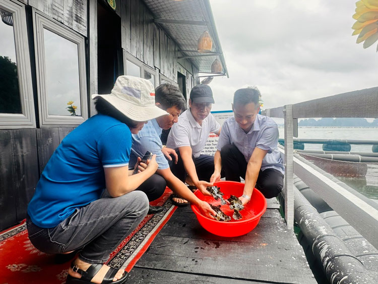 Trong các ngày 27 – 28/8, đoàn công tác đã làm việc tại huyện Vân Đồn (tỉnh Quảng Ninh), nơi triển khai mô hình nuôi cá mú trân châu bằng lồng HDPE trên biển. Mô hình có quy mô 315 m³ lồng, được kỳ vọng tạo bước tiến trong áp dụng công nghệ nuôi biển hiện đại, thay thế dần các loại lồng truyền thống. Đến nay, công tác chọn hộ tham gia, tập huấn kỹ thuật, cung ứng giống và vật tư đã cơ bản hoàn tất. Pano, biển hiệu mô hình cũng được bàn giao đúng yêu cầu. Theo đánh giá của đoàn, dự án không chỉ góp phần nâng cao năng suất và chất lượng sản phẩm cá mú mà còn mở ra hướng phát triển bền vững cho nuôi trồng thủy sản ven biển Quảng Ninh.