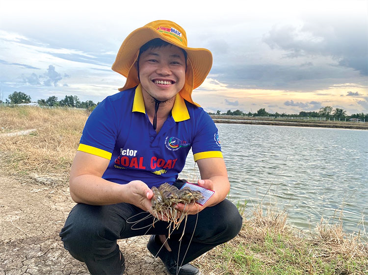 Câu chuyện về sự thành công của mô hình nuôi tôm sú M9 gắn liền với tên tuổi của những khách hàng vùng tôm – lúa huyện Mỹ Xuyên được anh Việt và những người nuôi tôm nơi đây giới thiệu cho chúng tôi cứ ngày một dài ra. Đó là anh Đỗ Văn Cảo, ở xã Ngọc Đông, huyện Mỹ Xuyên, vụ này chỉ thả 20.000 post sú M9, sau 140 ngày thu hoạch được 756 kg tôm cỡ 17,8 con/kg bán với giá 221.000 đồng/kg, lợi nhuận hơn 80 triệu đồng. Hay như anh Lê Phát Bảo Truyền, ở xã Hòa Tú 1, huyện Mỹ Xuyên thả 60.000 post sú M9 sau 140 ngày thu hoạch được 2,5 tấn tôm cỡ 21 con/kg bán với giá 200.000 đồng/kg, lợi nhuận hơn 300 triệu đồng. Anh Truyền khoe: “Giống tôm sú M9 của C.P này tôi mê lắm vì cùng một thời gian nuôi, nhưng nó lớn hơn các giống tôm sú khác mà tôi từng nuôi rất nhiều. Khoái nhất là bán được tôm ôxy nên mình không phụ thuộc nhiều vào các nhà máy”.