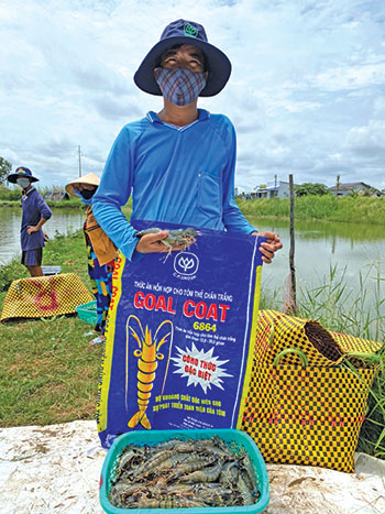 Vốn gắn bó với nghề nuôi tôm sú lâu năm, ngay sau khi nghe tin C.P. Việt Nam có nguồn giống tôm sú M9 có thể nuôi về đến cỡ 8 – 9 con/kg, anh Lê Hoàng Khương, ở xã Ngọc Tố, huyện Mỹ Xuyên đã chủ động liên hệ với cán bộ kỹ thuật C.P phụ trách địa bàn để tìm hiểu về con giống mới này. Sau khi được gới thiệu về con giống và tư vấn kỹ thuật nuôi, anh Khương quyết định đặt mua 200.000 post tôm sú M9 để thả nuôi cho một số ao của mình. Sau 143 ngày nuôi theo đúng quy trình kỹ thuật được cán bộ C.P hướng dẫn, ngay trong đợt thu hoạch đầu tiên đã mang về cho anh Khương 1,8 tấn tôm size trung bình 15 – 21 con/kg. Khác với những loại tôm sú gia hóa trước đây, tôm sú M9 rất được thương lái mua tôm ôxy (tươi sống) ưa chuộng, nên anh bán được bán với giá 220.000 và 240.000 đồng/kg. Hiện, anh Khương vẫn còn 4 ao đang nuôi về cỡ lớn hơn để bán giá cao hơn và có sản lượng lớn hơn. Anh Khương không giấu được niềm vui: “Giống tôm sú này lớn khá nhanh và bán được tôm ôxy nên dù chưa thu hoạch hết diện tích nhưng chắc chắn lợi nhuận sẽ cao hơn so những năm trước”.