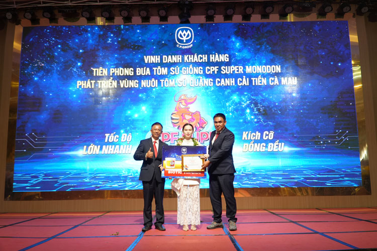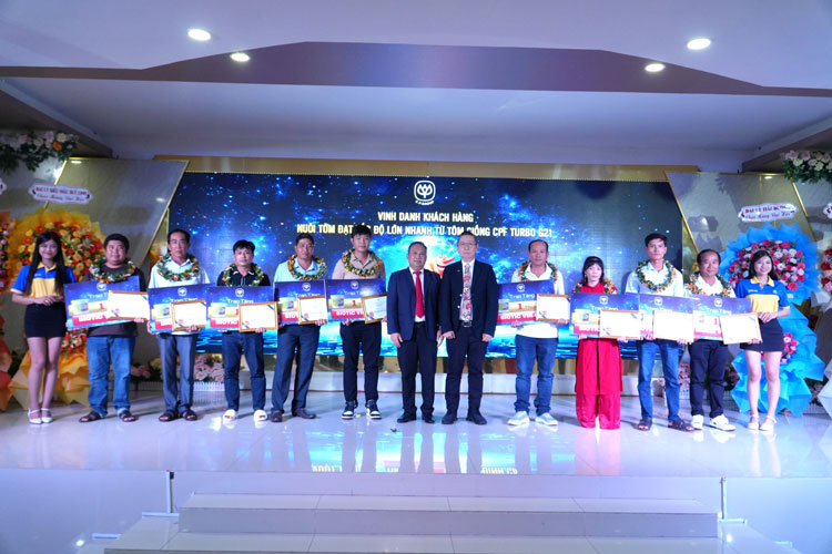 Và cũng trong chính sự kiện này. C.P. Việt Nam đã tổ chức vinh danh hàng trăm Quý khách hàng nuôi tôm thành công, đạt tốc độ lớn nhanh từ tôm giống CPF TURBO G21. Đồng thời, vinh danh khách hàng tiên phong sử dụng giống tôm sú CPF SUPER MONODON đạt hiệu quả kinh tế cao tại các khu vực.