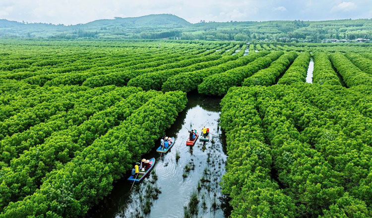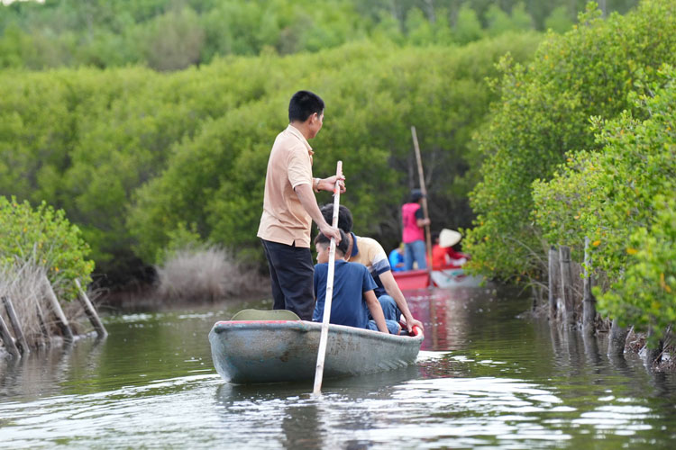 Rừng ngập mặn bàu cá Cái ở thôn Thuận Phước, xã Vạn Tường nằm trên đầm nước tự nhiên với diện tích khoảng 110 ha. Diện mạo nơi đây đã đổi thay nhờ sự mạnh dạn phát triển du lịch cộng đồng.