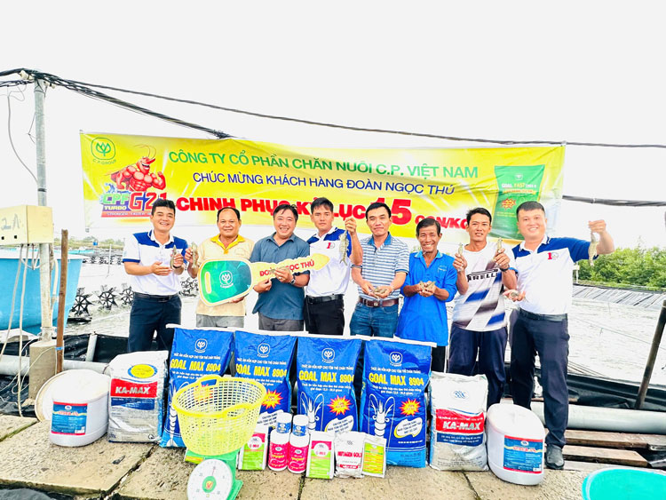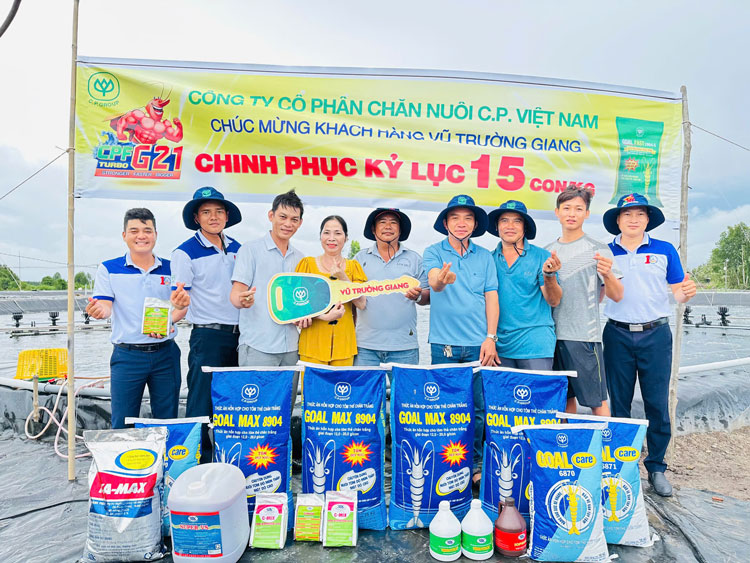 C.P. Việt Nam xác nhận kỷ lục 15 con/kg tại khu nuôi khách hàng Đoàn Ngọc Thú và khách hàng Vũ Trường Giang tại tỉnh Cà Mau