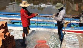 Mỗi ngày chỉ cần bỏ ra 4 – 5 tiếng, những người dân sống ở quanh khu vực cảng Hòn Khói (TX Ninh Hòa, Khánh Hòa) có thể kiếm được vài trăm ngàn có khi lên đến cả triệu từ việc bắt thức ăn bán cho người nuôi tôm hùm.