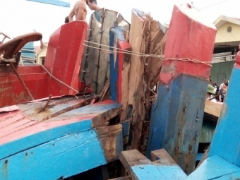 Khuya ngày 1/8, tàu thu mua hải sản vỏ gỗ của anh Trần Văn Hòa đang trên đường từ đảo Cát Bà (Hải Phòng) trở về đất liền bị một tàu lạ vỏ sắt đâm, khiến cho một phần tàu bị chìm, hư hỏng nặng; 14 ngư dân may mắn thoát nạn.