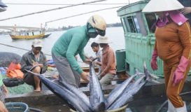 Hàng chục tàu cá khai thác xa bờ của ngư dân Khánh Hòa và các tỉnh lân cận trúng đậm cá ngừ sọc dưa mới đây đã cập Cảng cá Hòn Rớ (TP Nha Trang).
