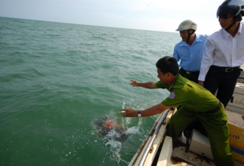 Ngày 28/3, Chi cục Khai thác và Bảo vệ Nguồn lợi thủy sản Thừa Thiên Huế cho biết, đã phối hợp cùng chính quyền địa phương, thả cá thể rùa biển (con Vích) nặng 45 kg về với môi trường tự nhiên (ảnh).