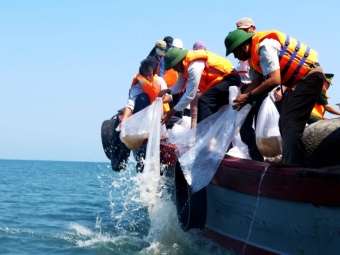 Ngày 19/4, Chi cục Khai thác và Bảo vệ nguồn lợi thủy sản tỉnh Quảng Bình cho biết, đơn vị vừa thả hàng trăm con tôm hùm bị khai thác, vận chuyển trái phép về biển.