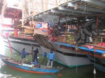 Sớm tinh mơ, Cảng cá Đông Hải (Phan Rang – Tháp Chàm) rộn ràng, tấp nập hàng trăm lượt tàu thuyền khoang đầy cá bạc đến neo đậu mua bán hải sản.