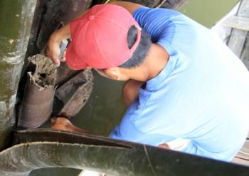 “Đêm chèo thuyền đi soi phải khua thật nhẹ mái chèo, động là cua bò xuống nước. Trời mưa, nước đục thì đành dùng thuổng đào, câu cua ra khỏi hang”, anh Lê Hùng Thanh, thợ săn cua có tiếng ở rừng dừa Hội An (Quảng Nam) nói.