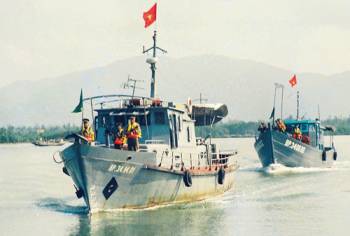 Ngư dân các tỉnh miền Trung phải đu dây, chèo thuyền vào trình thủ tục vào ra ngư trường tại trạm kiểm soát biên phòng.