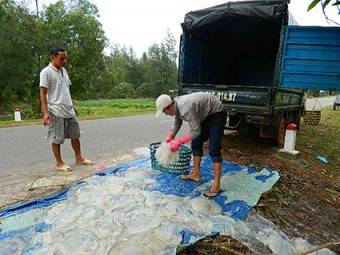 Vào những ngày này, người dân xã Trung Giang (Gio Linh, Quảng Trị) đang bước vào vụ khai thác sứa biển. Phần lớn ngư dân trong xã tạm thời chuyển từ nghề cào nghêu, đánh bắt ven bờ sang đánh bắt sứa vì có thu nhập khá hơn.