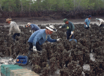 Chiếc ghe nhỏ tăng tốc trên con rạch nhỏ. Từ Bến Điệp (xã Long Sơn, TP. Vũng Tàu) đi vòng qua tắc Cái Sửu phải men theo nhiều con rạch chằng chịt mới đến được bãi nuôi hàu. Thời điểm này thủy triều đang rút, nước trên các con rạch chảy xiết, anh bạn cho ghe chạy hết công suất như đua với dòng nước để kịp đến bãi hàu trước khi thủy triều xuống cạn. Nghề đục hàu (khai thác hàu) trên bãi phụ thuộc hoàn toàn vào con nước, bình quân mỗi tháng vào mùa chỉ có vỏn vẹn 7-8 ngày cho thu hoạch hàu.