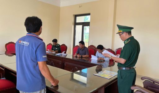 (TSVN) – Sáng 3/10, tại Đồn Biên phòng Cửa khẩu Cảng Sa Kỳ, Bộ đội Biên phòng Quảng Ngãi tổ chức tống đạt Quyết định xử phạt vi phạm hành chính đối với ông Võ Cao Trung (41 tuổi) trú thôn Cổ Lũy, xã Tịnh Khê thuyền trưởng tàu cá QNg 91369 TS, vì có nhiều hành vi vi phạm nghiêm trọng quy định về khai thác thủy sản.