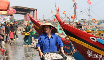 Những con tàu đầy ắp cá, hải sản tấp nập cập cảng Lạch Vạn (huyện Diễn Châu, Nghệ An) những ngày giáp Tết, mang lại thu nhập cao cho ngư dân nơi đây để đón một cái Tết thật ấm no.