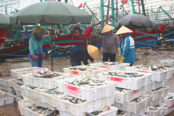 Để tập trung ứng phó với áp thấp nhiệt đới có thể mạnh lên thành bão, ngư dân huyện Quỳnh Lưu (Nghệ An) tập trung xuất bán hải sản, chằng chống tàu thuyền nhằm hạn chế thiệt hại mưa bão gây ra.