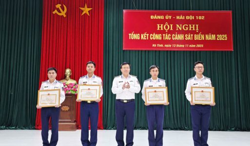(TSVN) – Ngày 13-11, tại Hà Tĩnh, Hải đội 102 – Bộ Tư lệnh Vùng Cảnh sát biển 1 tổ chức Hội nghị tổng kết công tác Cảnh sát biển năm 2025. Dự và chỉ đạo Hội nghị có đồng chí Thiếu tướng Trần Văn Thơ – Tư lệnh Vùng Cảnh sát biển 1; đồng chí Đại tá Nguyễn Hữu Tuyển – Phó Chính ủy Vùng; cùng đại diện các phòng, ban Cơ quan Bộ Tư lệnh Vùng.