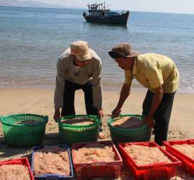 Trong 2 ngày mùng 4 và mùng 5 tết (ngày 2 và 3/2), ngư dân xã Nhơn Lý (Quy Nhơn, Bình Định) xuất hành đầu năm mới, đã trúng đậm “lộc biển” cá cơm mồm xuất khẩu và ruốc.