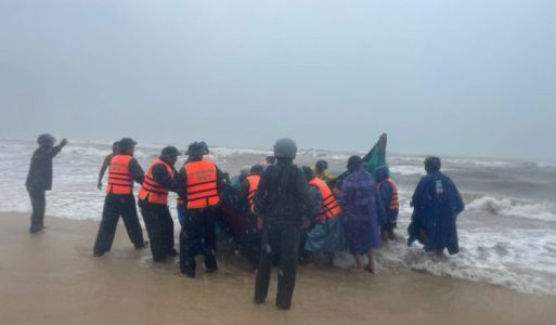 (TSVN) – Sáng nay (4/11) tại biển Nhật Tân, xã Triệu Lăng, huyện Triệu Phong, tỉnh Quảng Trị, các lực lượng chức năng đã kịp thời cứu thuyền đánh cá và ngư dân bị sóng đánh chìm đưa vào bờ an toàn.