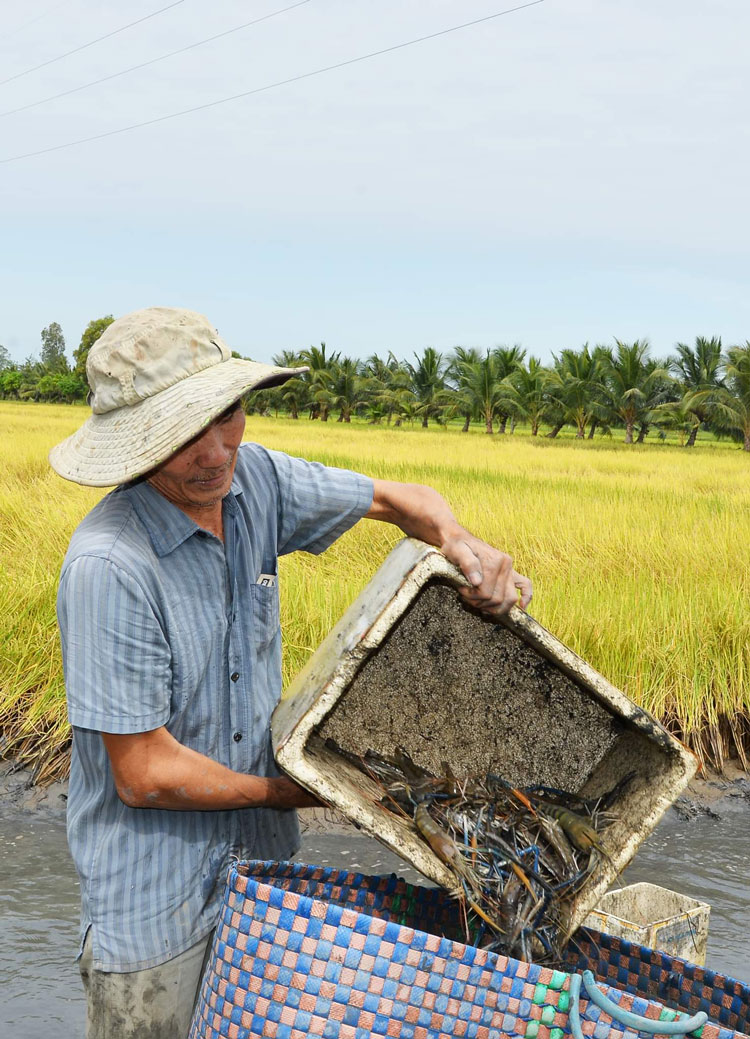 Bên cạnh yếu tố gia tăng lợi nhuận cho nhà nông, những năm gần đây, diện tích nuôi tôm càng xanh tại ĐBSCL tăng lên một phần là do có sự ràng buộc giữa doanh nghiệp bao tiêu lúa ST24, ST25 với nông dân.
