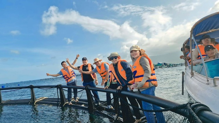 Các đại biểu tham quan mô hình nuôi biển công nghệ cao tại Khánh Hòa. Ảnh: KNKH