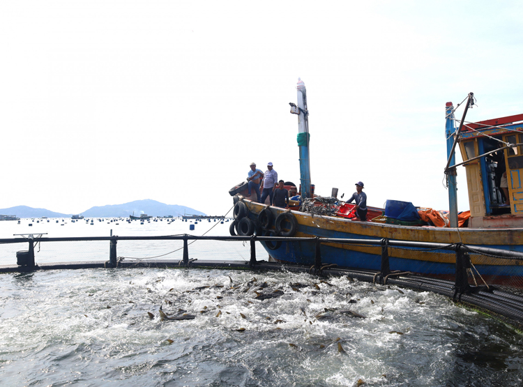 Trên vịnh Vân Phong, trang trại nuôi cá chẽm lớn nhất thế giới của Công ty TNHH Thủy sản Australis Việt Nam hiện đang có 71 lồng tròn HDPE được doanh nghiệp đặt nuôi, sản lượng trung bình 10.000 tấn cá mỗi năm. Trên sà lan cho cá ăn hoàn toàn tự động, ông Joshua Nathan Goldman – Tổng Giám đốc Công ty TNHH Thủy sản Australis Việt Nam bày tỏ: “Chúng tôi là nhà sản xuất, chế biến và xuất khẩu cá chẽm lớn nhất thế giới, với quy mô công nghiệp, hiện đại nhất Việt Nam hiện nay. Những năm qua, doanh nghiệp đã tập trung đầu tư công nghệ nuôi biển hiện đại ở khu vực ngoài khơi, hình thành chuỗi khép kín từ sản xuất đến tiêu thụ”.