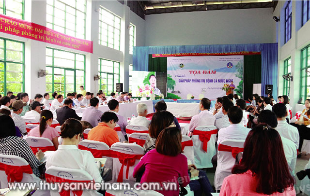 Ông Kim Văn Tiêu, Phó Giám đốc Trung tâm Khuyến nông Quốc gia cho biết, nhiều địa phương trong cả nước có thế mạnh về sản xuất thủy sản đã lựa chọn lọc những giống cá chất lượng như cá trôi, trắm, chép, rô phi đơn tính… thích hợp với nuôi ở các tỉnh miền núi phía Bắc và mang lại hiệu quả kinh tế cao. Tuy nhiên trong quá trình nuôi trồng, nhiều nhân tố thúc đẩy như không gian, con giống, thời tiết… khiến cho cá mắc một số bệnh ảnh hưởng đến năng suất nuôi. Trên cơ sở đó, chương trình tọa đàm được tổ chức nhằm giúp người dân chủ động phát hiện sớm dịch bệnh để kịp thời áp dụng các biện pháp phòng, chống hiệu quả, tránh gây thiệt hại về kinh tế. Vì thế, 80% người tham dự tọa đàm là nông dân và các doanh nghiệp, HTX chăn nuôi cá nước ngọt.