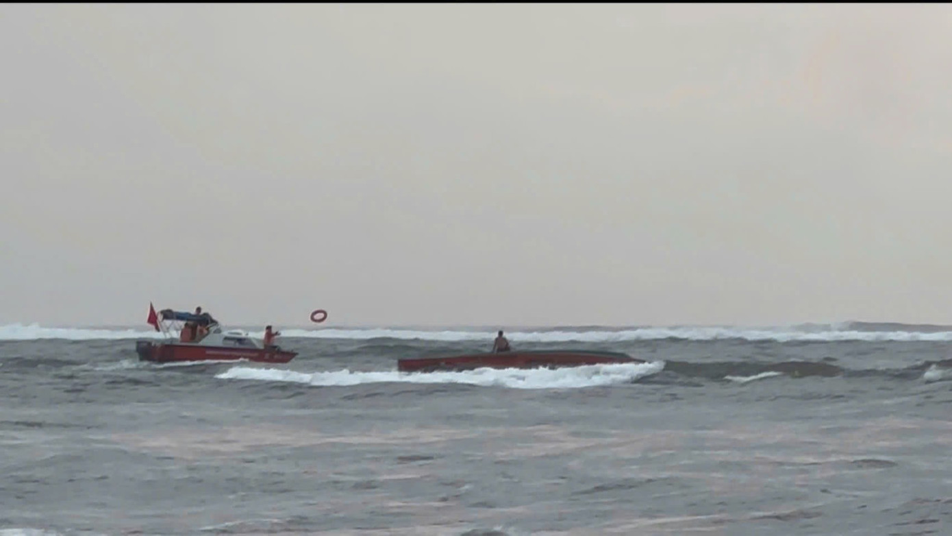 Trong quá trình tìm cách đưa tàu vào luồng, một đợt sóng mạnh bất ngờ đánh lật nghiêng con tàu khiến phương tiện bị chìm một phần. Sự cố xảy ra nhanh khiến các thuyền viên rơi xuống biển. Bốn ngư dân may mắn được các tàu cá hoạt động gần đó phát hiện và kịp thời cứu vớt. Riêng ông Nguyễn Tiến Hoàng vẫn bám trụ trên thân tàu đang chao đảo giữa sóng lớn.