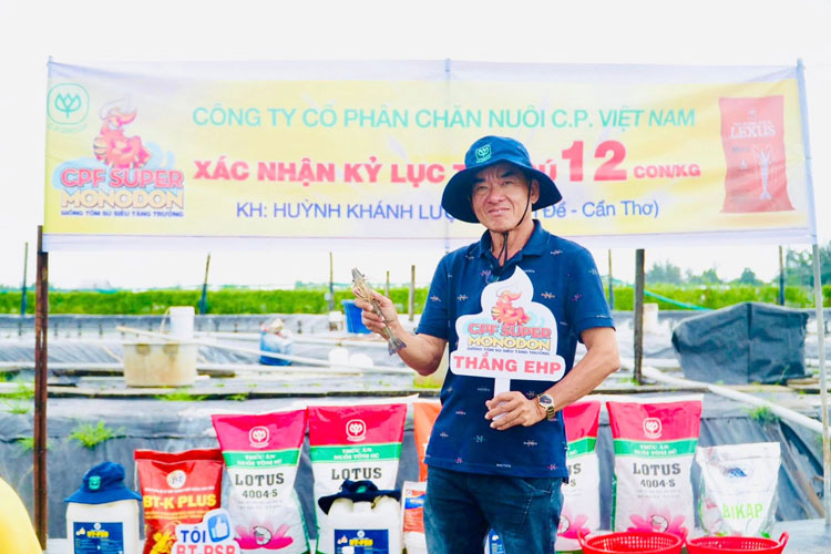 “Tôi chọn CPF SUPER MONODON vì muốn tìm lại niềm tin sau nhiều vụ thất bại. Nhờ con giống tốt, kết hợp thức ăn Lotus và Lexus của C.P. Việt Nam, tôm phát triển ổn định, lớn nhanh và đạt kích cỡ kỷ lục.”