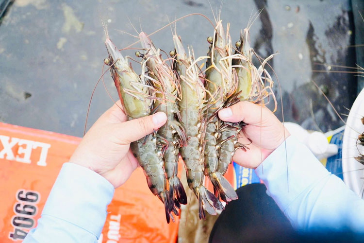 Sau 144 ngày nuôi, anh Lượng đạt kết quả ấn tượng khi tôm đạt cỡ 12 con/kg. Đặc biệt, trong bối cảnh các vùng nuôi lân cận thường xuyên chịu ảnh hưởng của bệnh EHP và phân trắng, đàn tôm của anh vẫn phát triển ổn định, khỏe mạnh, vỏ cứng bóng, lớn nhanh, đồng đều và thích nghi tốt trong cả mùa nắng lẫn mùa mưa.