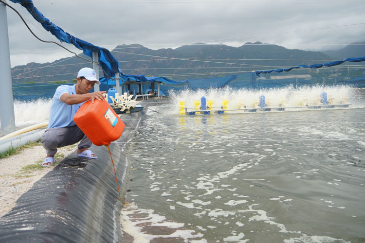 Xử lý nước sau xi phông là bước cần thiết để ổn định môi trường ao nuôi. Ảnh: VM