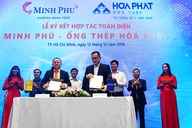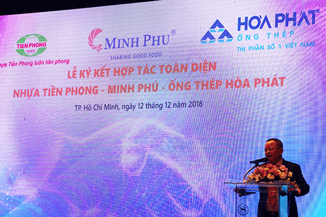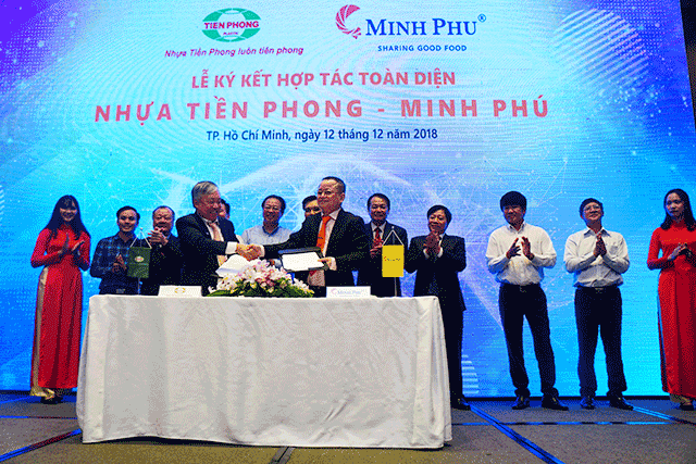 Lễ ký kết hợp tác toàn diện 3 bên đã được long trọng tổ chức ngày 12/12/2018 tại TP Hồ Chí Minh giữa Tập đoàn Thủy sản Minh Phú, Công ty CP nhựa Thiếu niên Tiền Phong, Công ty Ống thép Hòa Phát Bình Dương. Theo đó, Minh Phú ưu tiên sử dụng sản phẩm ống nhựa Tiền Phong, ống thép Hòa Phát trong các dự án nuôi tôm hồ nổi công nghệ cao, sẽ được triển khai trong thời gian sắp tới tại Vũng Tàu và Kiên Giang.