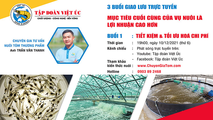 Đặc biệt, để hiểu rõ hơn về Bí quyết giúp nâng cao lợi nhuận thông qua việc tiết kiệm, tối ưu hóa chi phí trong nuôi tôm. Bà con hãy cùng nhau đón xem chương trình Giao lưu trực tuyến do Tập đoàn Việt Úc tổ chức vào 19h, ngày 10/12/2021 (Tối thứ 6 tuần này) trên kênh Youtube và Fanpage Việt Úc.