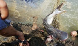 Người dân đổ xô bắt cá khủng dưới đập thủy điện Trị An