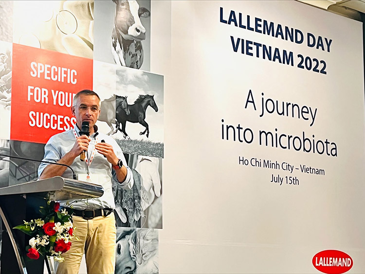 Cũng trong “Ngày Lallemand tại Việt Nam”, ông Pierre Lebreton, Giám đốc kỹ thuật và Marketing của Lallemand Animal Nutrition đã có bài trình bày “Thấu hiểu hệ vi sinh” nhằm giới thiệu về tầm quan trọng của vi sinh vật trong NTTS; Những sản phẩm từ vi khuẩn, nấm men, các chiết xuất từ vi khuẩn và nấm men chuyên biệt do Lallemand sản xuất…