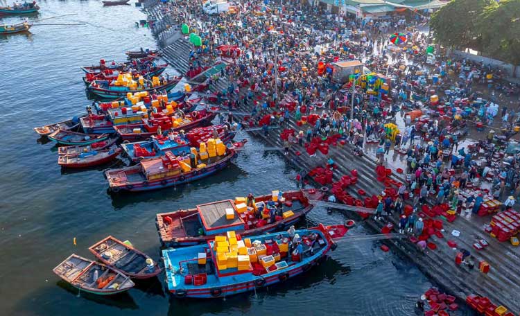 Nhộn nhịp cảng cá Nghi Thủy mỗi sáng sớm. Ảnh: Q.A