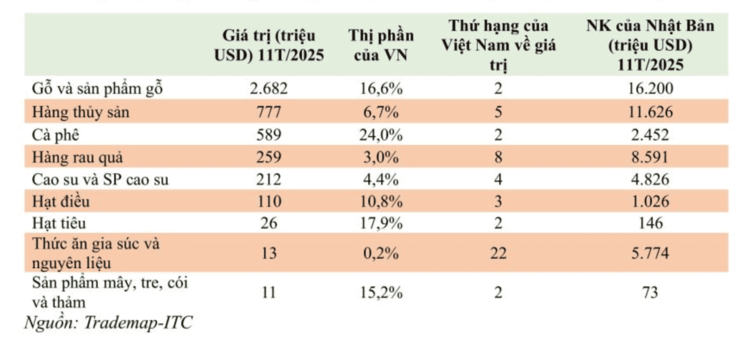 Ở chiều ngược lại, nhập khẩu nông sản của Việt Nam từ Nhật Bản trong quý đạt khoảng 202 triệu USD, tăng 14,4% so với Quý IV/2024; trong đó, riêng thủy sản đạt 81 triệu USD, chiếm 40,36% và tăng gần 25%.