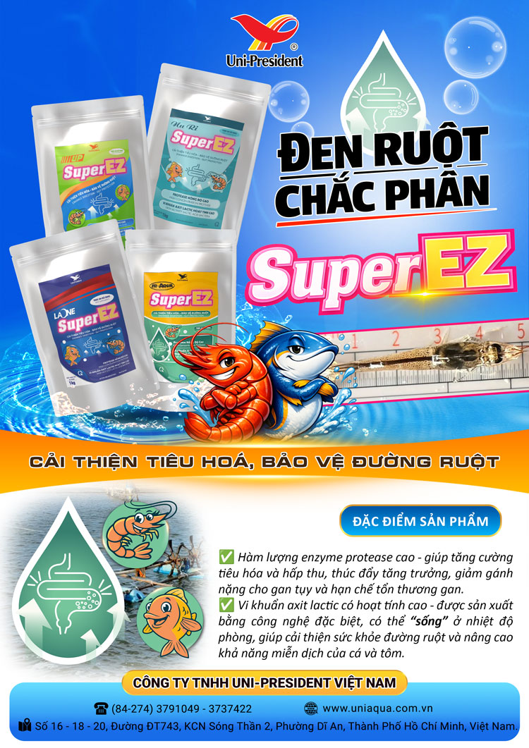 “Nuôi tôm đen ruột chắc phân – dễ nhưng không dễ” bởi phía sau đó là cả một quá trình quản lý kỹ thuật bài bản. Với Super EZ, chúng tôi mong muốn đồng hành cùng bà con trên hành trình xây dựng đàn tôm khỏe mạnh từ bên trong – bắt đầu từ hệ tiêu hóa vững chắc.”