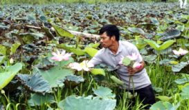 Những ngày tháng tám, trên khu đầm sen rộng gần 1 ha nằm trên đường Tràng An, gia đình ông Trần Văn Dũng, thôn Chi Phong, xã Trường Yên (Hoa Lư) tất bật với công việc thu hoạch sen và cá.