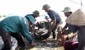 Từ đầu tháng 5 đến nay, giá tôm liên tục giảm mạnh khiến nhiều hộ nuôi lo lắng; theo đó, các cơ quan chức năng khuyến cáo người nuôi nên đưa tôm về cỡ 40 – 50 con/kg mới thu hoạch hoặc thực hiện nuôi rải vụ, tránh thu hoạch tập trung.