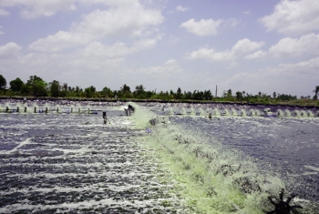 Đó là mô hình của ông Nguyễn Văn Thắm ở ấp Xẻo Lá, xã Tân Thạnh, huyện An Minh, tỉnh Kiên Giang. Cái hay của mô hình này là sử dụng vi sinh để khống chế rong tảo không cho bám lên thành và đáy bạt, giúp giảm công lao động và tôm ít bị các bệnh đường tiêu hóa.